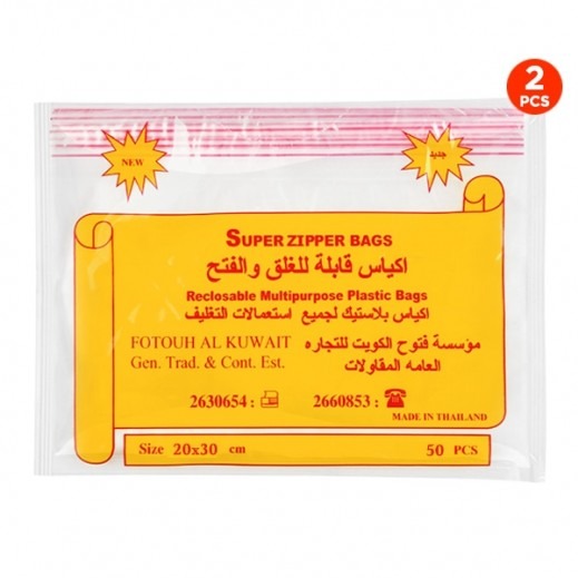 اكياس بلاستيك قابلة للغلق والفتح 20 * 30 باكت 50 حبة